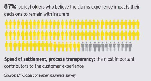 According to E&Y, “When the claims process breaks down, consumer satisfaction falls and insurer costs go up—that is the penalty effect of a bad claims experience. In this sense, every claim is a ‘moment of truth.’”