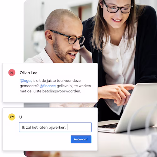Bevrijd je team van routinecontracten. Stel controles in voor niet-onderhandelde contracten, automatiseer de routering van afwijkingen, tag reviewers met in-line opmerkingen en blijf op koers met directe waarschuwingen.