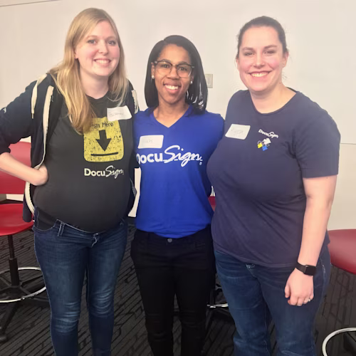 The team met with several students throughout the day answering questions, providing guidance, and handing out Docusign SWAG.