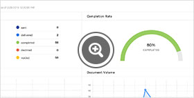Vom Docusign-Dashboard aus sehen Sie den Status, erstellen Berichte und zeigen Prüfpfade an. Sie können jederzeit sehen, wo sich das Dokument im Workflow befindet. Stellen Sie automatische Erinnerungen ein und lassen Sie sich über die einzelnen Schritte im Workflow benachrichtigen.