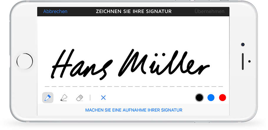 Sie können durch einfaches Tippen Ihre rechtsverbindliche Unterschrift und Initialen sicher in Dokumente einfügen sowie zum Ausfüllen von Formularen Text, Datumsfelder und Kontrollkästchen ergänzen. Zudem können Sie direkt auf Ihrem Tablet und Smartphone persönliche Signierungen vornehmen.