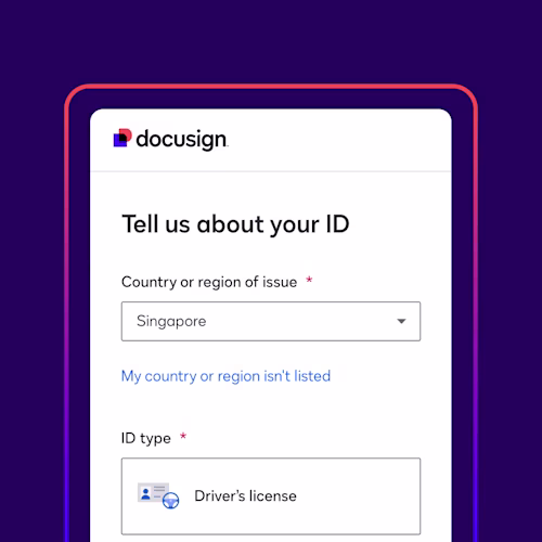 At Docusign, we understand that agreement is based on identity and intent. While the standard way of identifying a signer is to send a link to the signer’s email address, certain types of high-value or highly-sensitive agreements require enhanced identity verification. While this may vary by country, region, or industry, the extensive list of solutions offered within Docusign Identify help customers integrate the right identity verification technique for any given type of agreement, while keeping the signing experience digital, user-friendly, compliant, and enforceable.