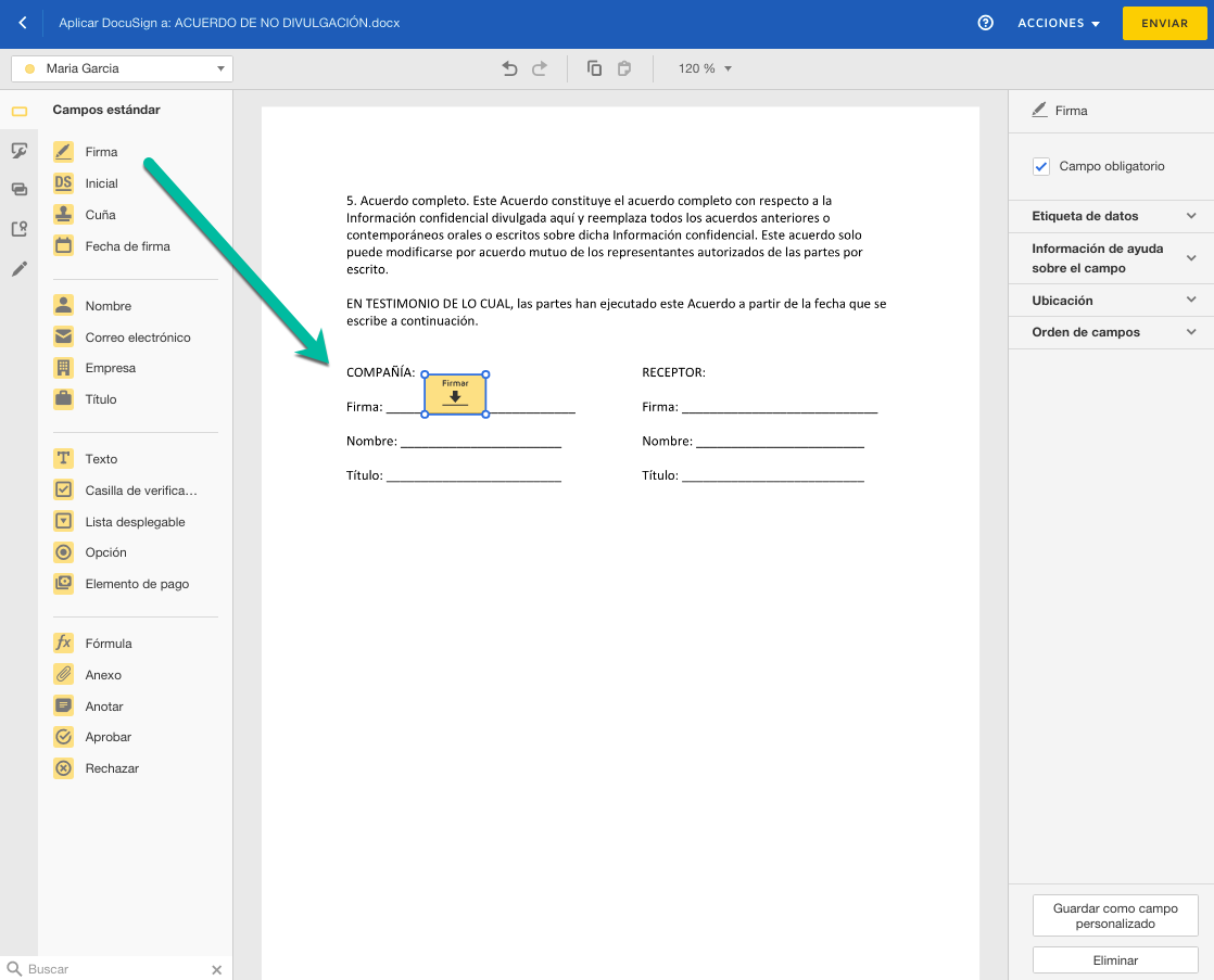 Nota: Para obtener información más detallada, consulte la guía ¿Cómo envío un documento de Docusign?