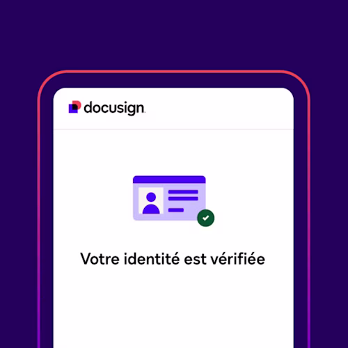 Docusign Identify fait référence à notre gamme de produits de vérification d’identité et d’authentification avancées. Ces offres permettent aux entreprises de résoudre le problème de l’automatisation de la vérification de l’identité tout en maintenant une expérience sécurisée, simplifiée et conviviale qui va au-delà des méthodes standard basées sur le courriel (c.-à-d., demander au signataire de confirmer son adresse courriel). Grâce à l’étendue de notre portefeuille, nos solutions peuvent être adaptées à vos besoins, quel que soit votre secteur d’activité ou votre dossier d’utilisation.