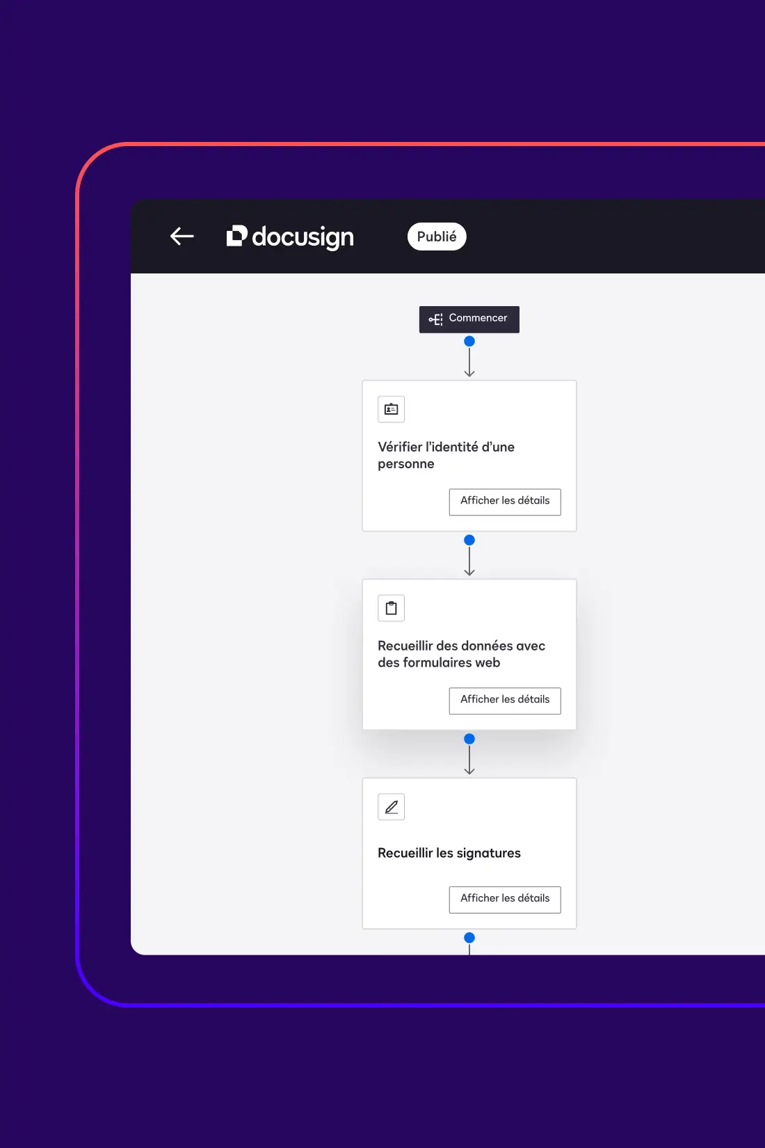 Exploitez la puissance des flux de travail de Docusign. Profitez d’une flexibilité accrue pour gérer vos accords en utilisant votre propre code avec l’API Maestro.