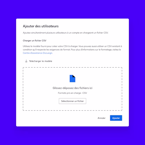 Gérez facilement les utilisateurs, les comptes, les rapports et votre configuration de sécurité avec Docusign Admin.