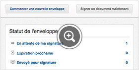 Soyez informé du statut de vos demandes, envoyez des relances personnalisées aux documents en attente de signature, accédez à votre bibliothèque de documents n’importe où et consultez les reportings. En utilisant notre plateforme de signatures électroniques, vous profiterez d’un grand nombre de services et options très utiles qui vont vous faire gagner beaucoup de temps dans la gestion quotidienne de vos demandes de signatures et documents.