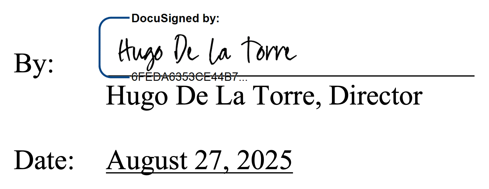 This Statement was approved on the date set forth below by the boards of directors (or an authorized committee of the board of directors) of Docusign, Inc., Docusign UK Limited, Docusign France SAS, Docusign Canada ULC, and (for the purposes of the Australian Act) by the board of directors of Docusign International, Inc. The foregoing boards of directors have authorized Hugo De La Torre to sign this Statement on behalf of Docusign in his capacity as an officer or director, as applicable, of the Docusign group entities making this Statement.