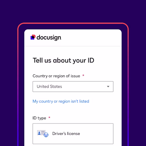 Regardless of the option you select, the identity verification process is automated, tightly-integrated into the Docusign eSignature process, and tailored to your business needs to help streamline your agreement processes.