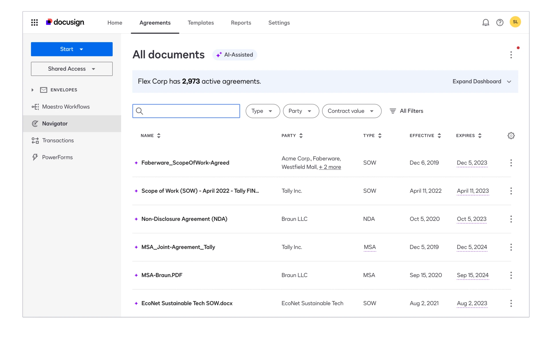 Docusign Navigator: mais inteligência para gerenciar acordos