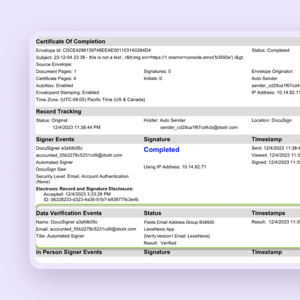Familiarize legal, compliance, and IT teams with metadata in Certificates of Completion and audit logs. Use it as a forensic tool to investigate and defend against fraud.